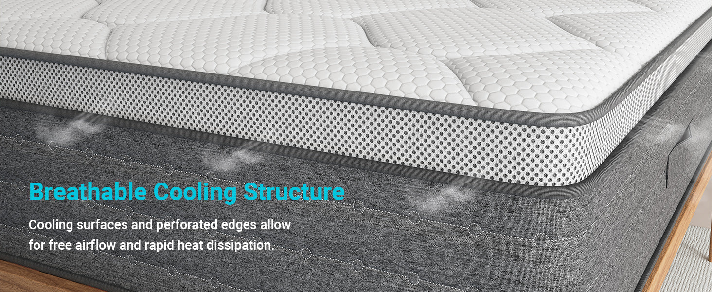 Breathable Fabrics: Quilted jacquard cover and knitted top keep the mattress cool and comfortable by dispersing heat and moisture.