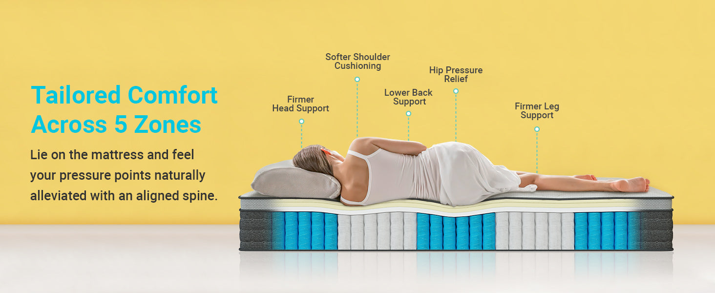 Comfort & Support: 5-zone pocket springs and soft foam offer targeted support and pressure relief, ideal for medium-firm preference.